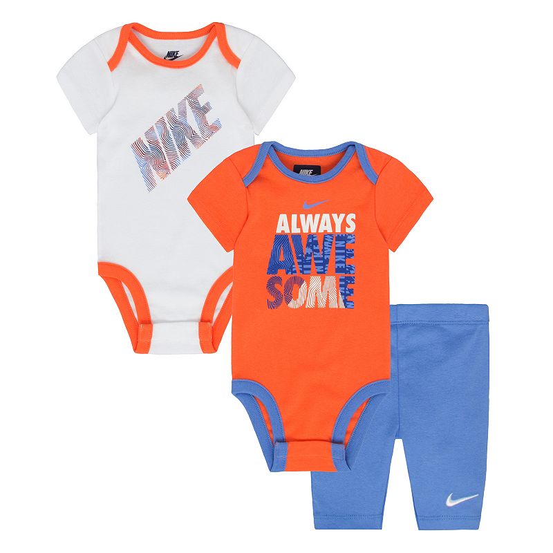 Bright, bold and colorful, this Nike bodysuit and capris set will keep your little one comfortably covered all day long