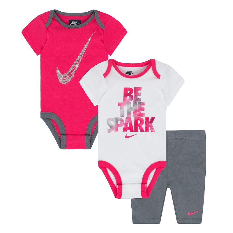 Bright, bold and colorful, this Nike bodysuit and capris set will keep your little one comfortably covered all day long