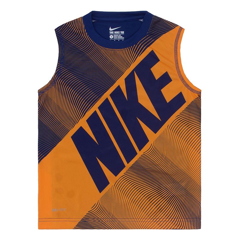 This boys' Nike Dri-FIT muscle tank features an abstract, fingerprint-like graphic for a truly unique look