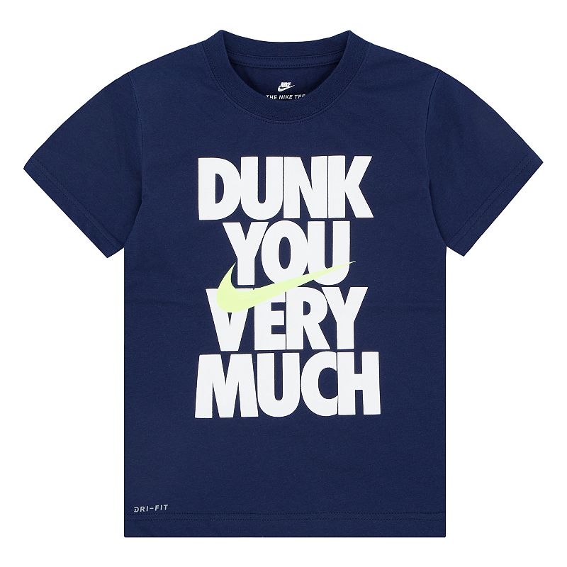 Crewneck Short sleeves Signature Nike swoosh Soft jersey construction Moisture-wicking Dri-FIT fabric keeps him cool &