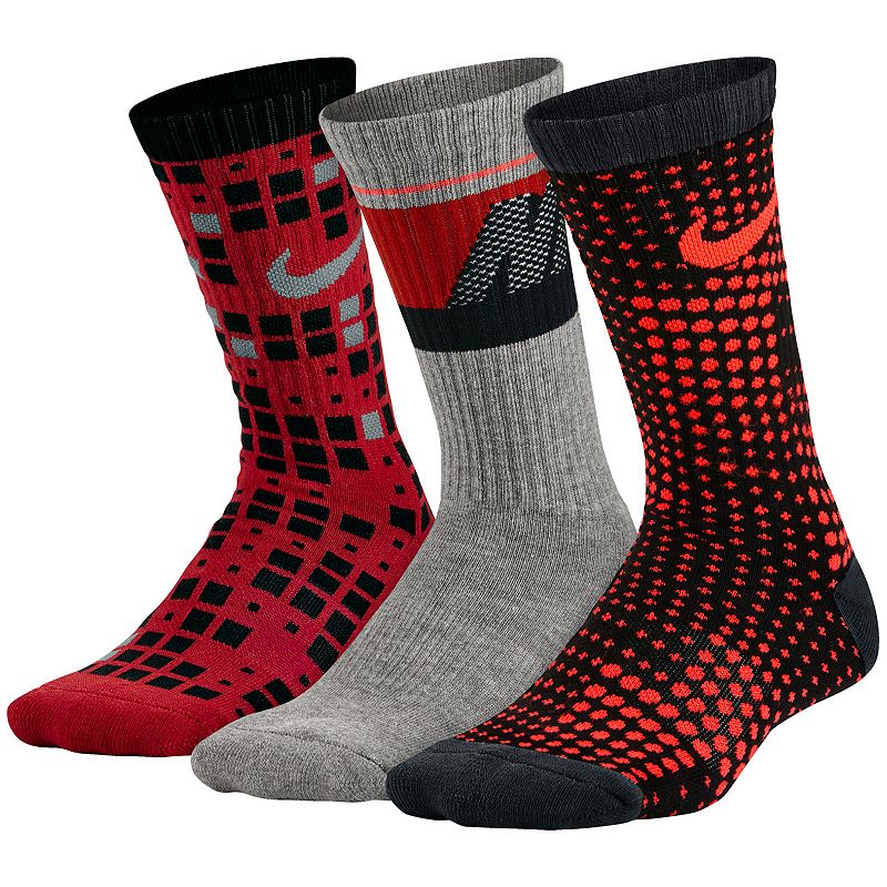 Boys Nike 3-Pack Graphic Crew Socks, Boy's, Size: 9-11, Red