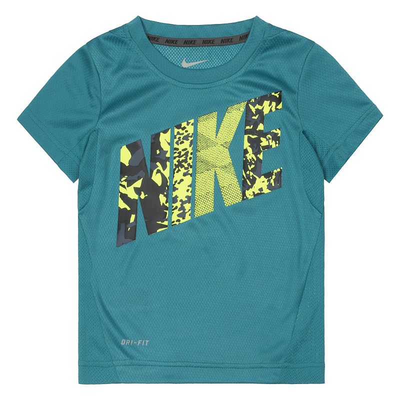 He can't be missed wearing this sporty boys' Nike Dri-FIT tee, featuring a cool camo-print design