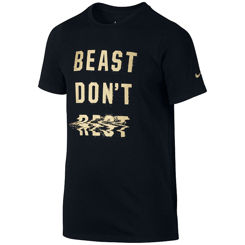 He will unleash his inner beast when he puts on this boys' Nike Dri-FIT tee, and stay dry, too