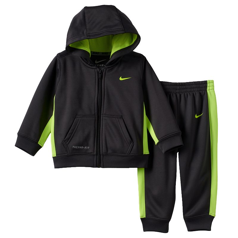 This Nike boys' hoodie and pants set, featuring Therma-FIT technology, is perfect for warming up