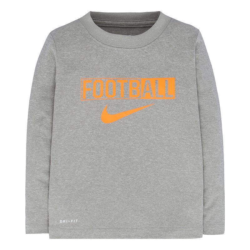 This boys' Nike raglan tee featuring moisture-wicking Dri-FIT technology will keep your active little man cool and dry